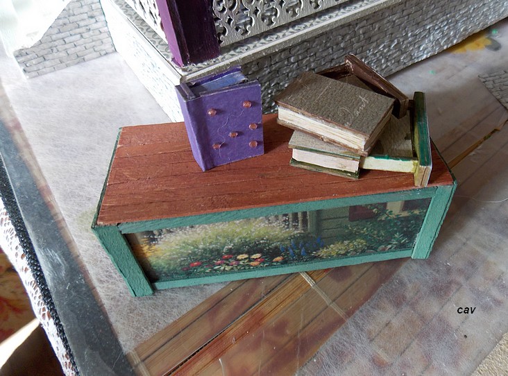 They actually are book "drawer," kits from CastleCrafts. Perfect place to hide some jewelry or, hey--Chocolate! Turned out pretty cool, I'd say. I think I'll use the purple book in the cottage even if it's slightly bigger.